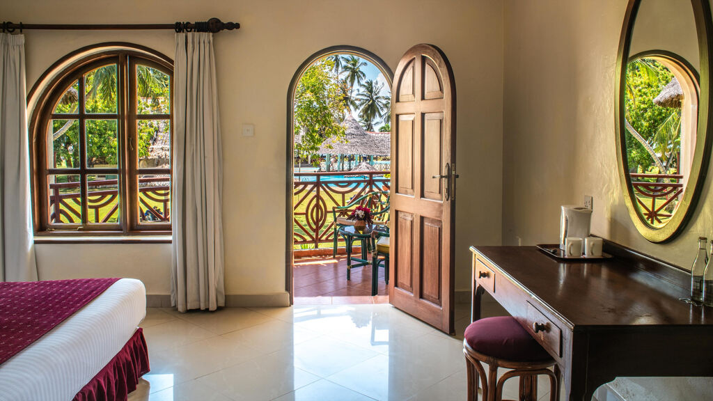 Vybavení pokojů:Dvoulůžkový pokoj superior zahrada: 27 m2, koupelna/WC, fén na vlasy, klimatizace, stropní ventilátor, telefon, trezor, lednička, moskytiéra, TV/sat, Wi-Fi (zdarma), balkon nebo terasa.