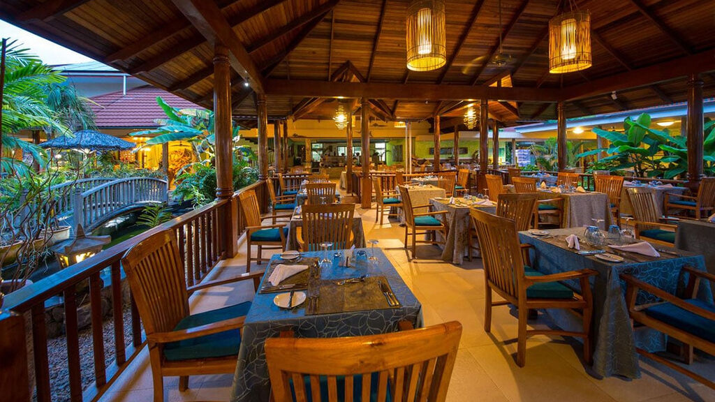 Menší kompletně renovovaný luxusní hotelový komplex patrových bungalovů a několika vil je situován v tropické zahradě s mnoha druhy orchidejí přímo u pláže Cote d´Or na východě druhého největšího seychelského ostrova Praslin.