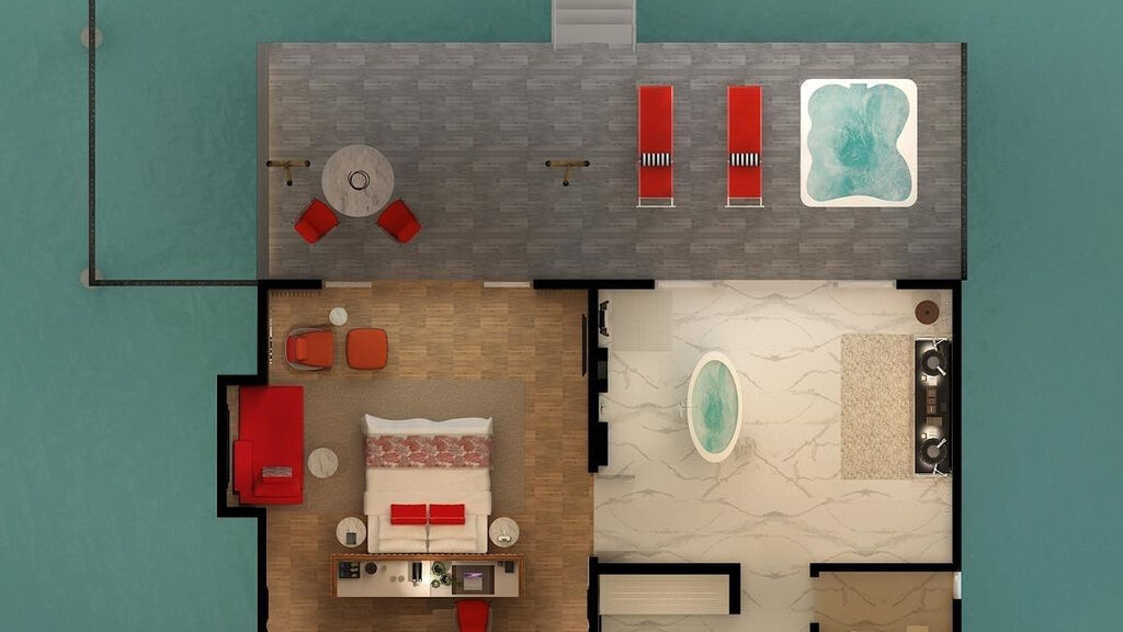 Vybavení pokojů:Vila, Marina, Soukromý bazén: 187 m2, samostaně stojící vila, vila u přistávacího mola, sprcha, vana, toaleta, župan, fén, klimatizace, ventilátor, minibar, trezor, TV, Wi-Fi, kávovar, set na přípravu kávy/čaje, terasa (zařízená), soukromý bazén
