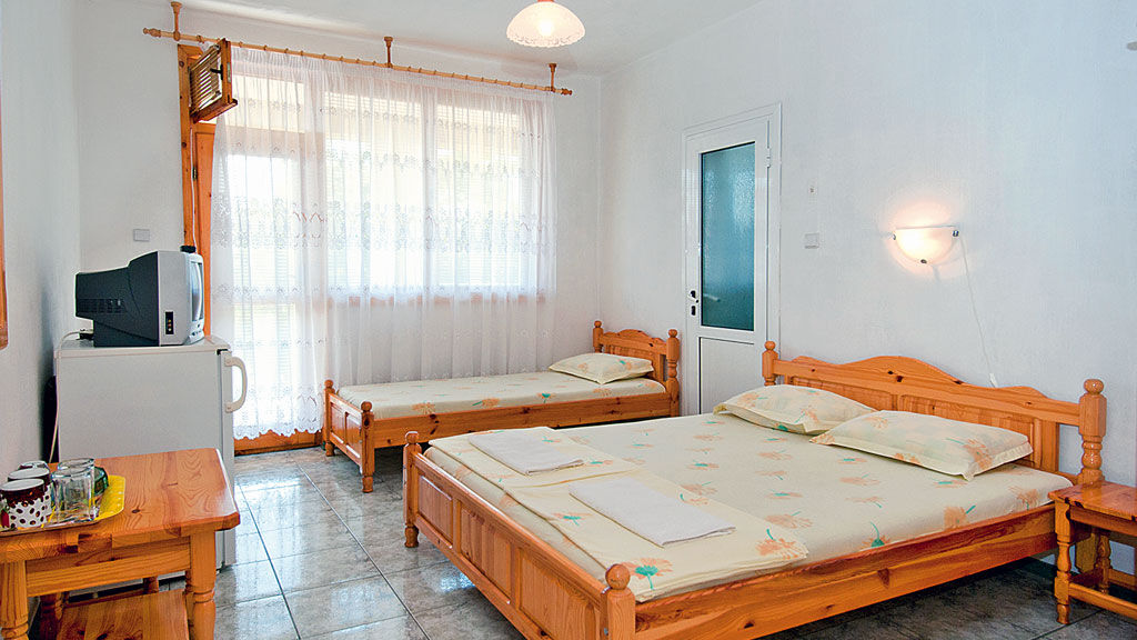 Pláž je písčitá, prostorná, dlouhá přes jeden kilometr a svažující se postupně do moře. Je vzdálená cca 450 m od penzionu. V letovisku najdete i menší písčité pláže. Slunečníky a lehátka na pláži za poplatek. Na pláži – občerstvení, bary, pronájem vodních šlapadel, vodních lyží,
