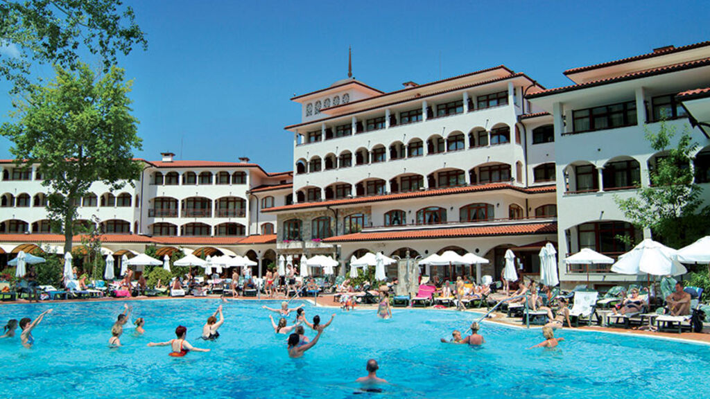 Základní informace:Luxusní pětihvězdičkový hotel Helena Park je společně s hotelem Helena Sands součástí moderního komplexu Royal Palace Helena Resort, který se rozkládá přímo na krásné písčité pláži Slunečného pobřeží – jednoho z nejoblíbenějších bulharských letovisek. Pouhých 6 km od rezortu najdeme město Nessebar, turisty hojně navštěvované a obdivované pro svou jedinečnou architekturu a památky. Do jeho centra se lze snadno dostat místní hromadnou dopravou. U komplexu se nachází vyhlášená promenáda s množstvím barů, restaurací, obchodů a možností zábavy. Royal Palace Helena, jeden z nejrozsáhlejších resortů při pobřeží Černého moře, je situován v upravené zahradě s množstvím zajímavých rostlin a stromů. Je ideální volbou pro rodiny s dětmi, pro páry toužící po romantické dovolené i pro náročnou klientelu.