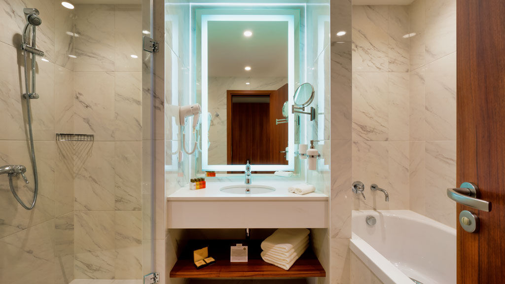 Dvoulůžkové pokoje s možností 1 přistýlky mají vlastní příslušenství (koupelna, vysoušeč vlasů, WC), klimatizace, WiFi zdarma, telefon, trezor a balkon; minibar (za poplatek).