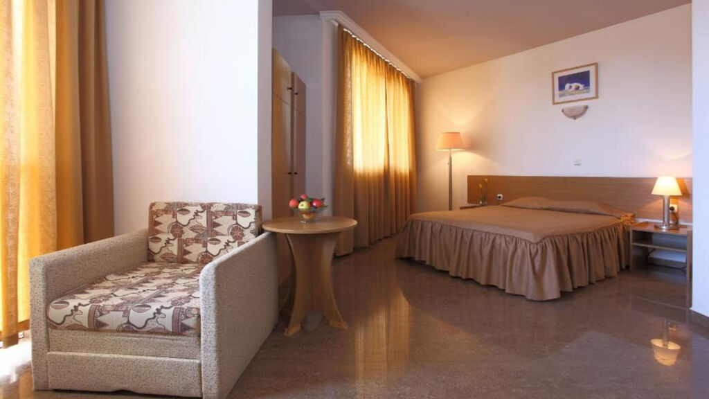 Cenově příznivý hotel pro celou rodinu a velmi nenáročné klienty. Klidné prostředí letoviska Sveti Konstantin. WiFi v lobby zdarma.