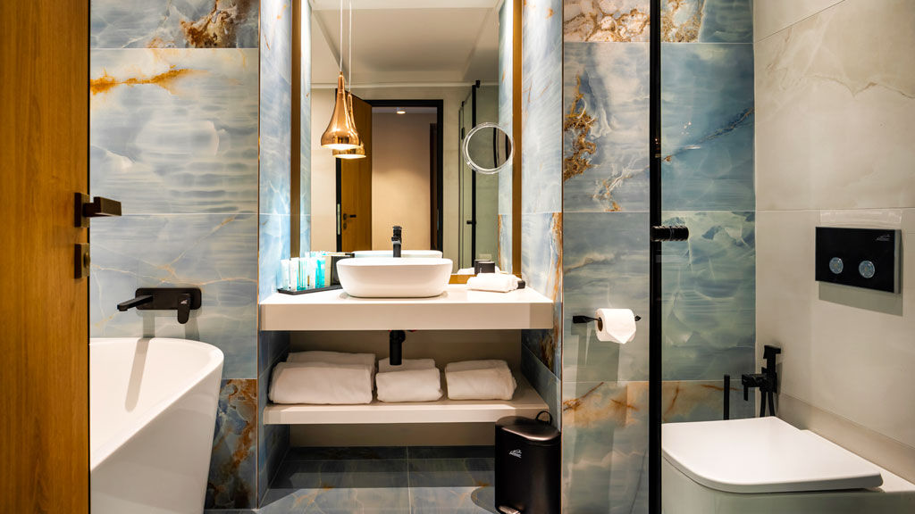 Luxusní dvoulůžkové pokoje s přistýlkou (rozkládací křeslo) mají klimatizaci, telefon, SAT-TV, mini-bar, koupelnu s vanou a samostatnou sprchou (pokoje s výhledem na park mají jen sprchu), vysoušeč vlasů a telefon, trezor zdarma a balkon s výhledem na moře nebo do okolí.