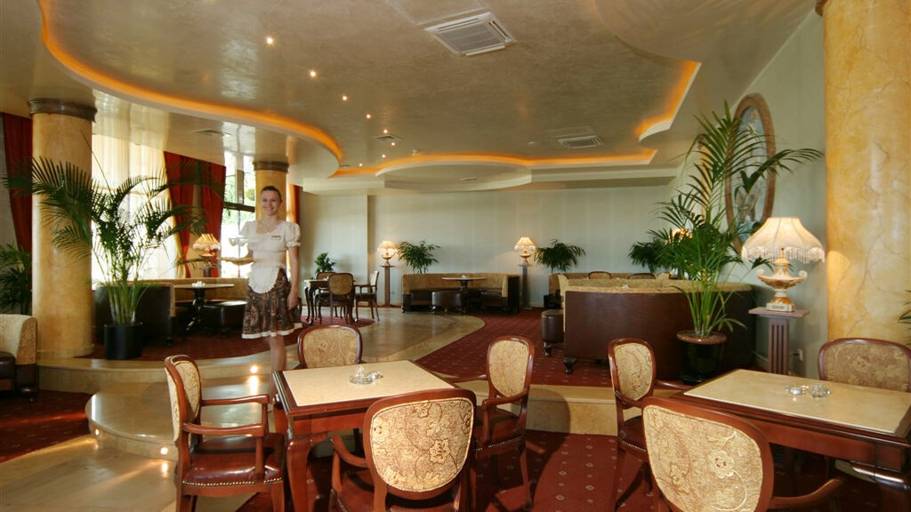 Velká hala s recepcí, směnárna, lobby bar, restaurace, vídeňská kavárna, lékař a kadeřník, noční klub, internet, posilovna, masáže, kosmetika, solárium, obchod se suvenýry, krytý bazén, bazén s dětskou částí. WI-FI internet v hale zdarma.