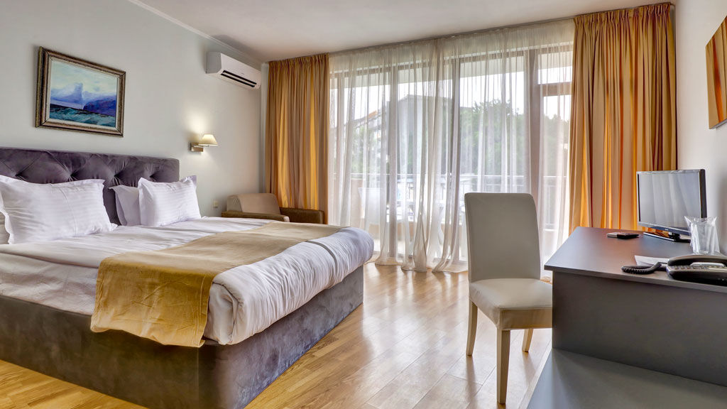 Pokoje s balkonem (některé s výhledem na moře za příplatek) a sociálním zařízením (vana nebo sprcha, WC, fén) jsou klimatizovány (klimatizace zdarma) a vybaveny TV/SAT, Wi-Fi (zdarma), telefonem, trezorem (zdarma) a chladničkou. Možnost jedné přistýlky. Maximální obsazenost tři dospělí. V hotelu jsou k dispozici i apartmány A 2+2 s výhledem na moře (ložnice a denní místnost s rozkládacím gaučem). Klimatizované (klimatizace zdarma) apartmány s balkonem a sociálním zařízením (vana, WC, fén) jsou vybaveny TV/SAT, Wi-Fi (zdarma), trezorem (zdarma) a telefonem. Možnost dvou přistýlek, maximální obsazenost tři dospělí a jedno dítě.