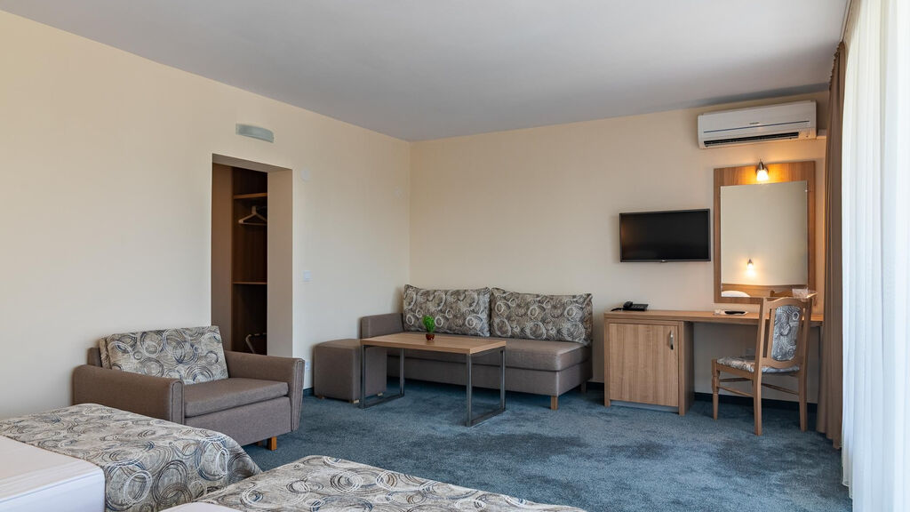 Poloha hotelu:Na klidném místě v severozápadní části oblíbeného letoviska Zlaté Písky. Hotel je umístěn ve svahu, v bohaté zeleni. Živé centrum letoviska s obchoy, restauracemi a bary je vzdálené 1 km, letiště Varna 30 km. V blízkosti hotelu se nachází autobusová zastávka.