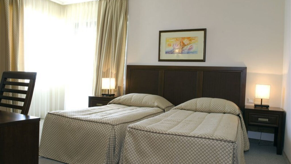 Standardní dvoulůžkové pokoje s možností jedné přistýlky mají klimatizaci, minibar, menší televizor, trezor za poplatek a koupelnu s vanou a sprchou. Všechny pokoje mají balkon a jsou orientovány na moře a do zahrady. K dispozici jsou apartmány s jednou nebo dvěma ložnicemi. Možnost připojení internetu kabelem zdarma.