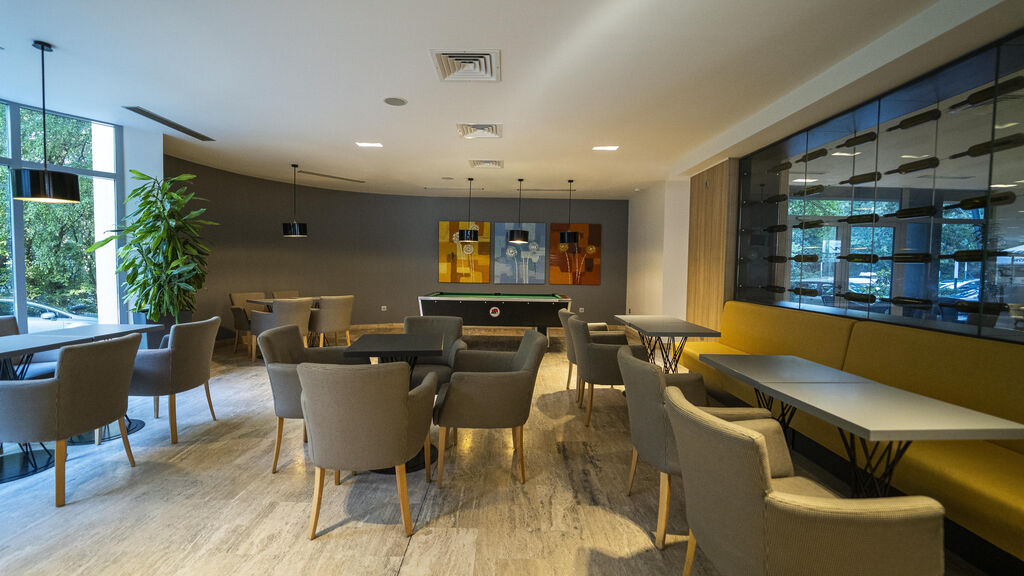 Vybavení pokojů:Dvoulůžkový pokoj: klimatizace, TV/sat., telefon, trezor (za poplatek), minibar (voda, pivo, nealkoholické nápoje, víno, chipsy, sladkosti a bombóny - denně doplňován zdarma), kávovar na kapsle, koupelna/WC (vysoušeč vlasů), balkon nebo terasa.