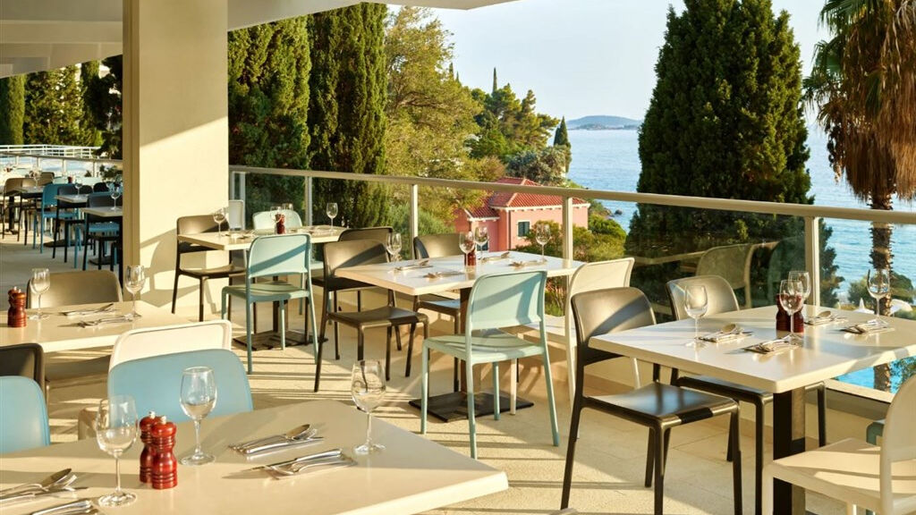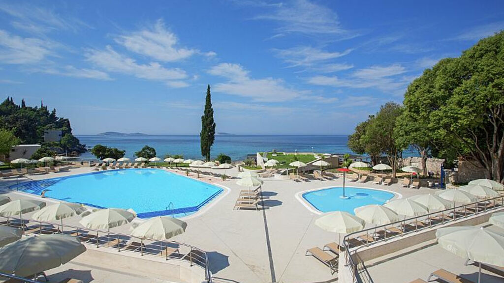 310 pokojů, hlavní budova (5 pater, výtah) a depandance (3 patra), vstupní hala s recepcí, směnárna, restaurace, dvě á la carte restaurace (pizzeria Mlini a beach bar Oleander), kadeřnictví, obchod se suvenýry, venkovní bazén, lehátka a slunečníky u bazénu zdarma