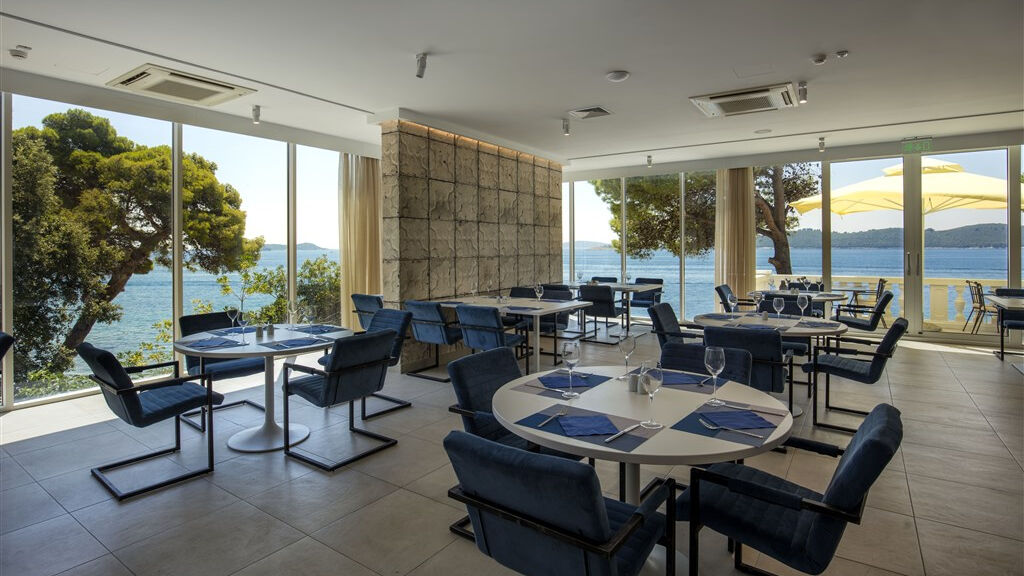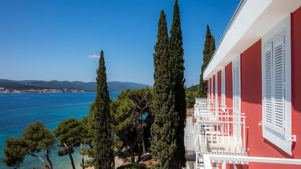 U krásné pláže cca 700 m západně od centra Orebiče. Hotel je obklopen zelení.