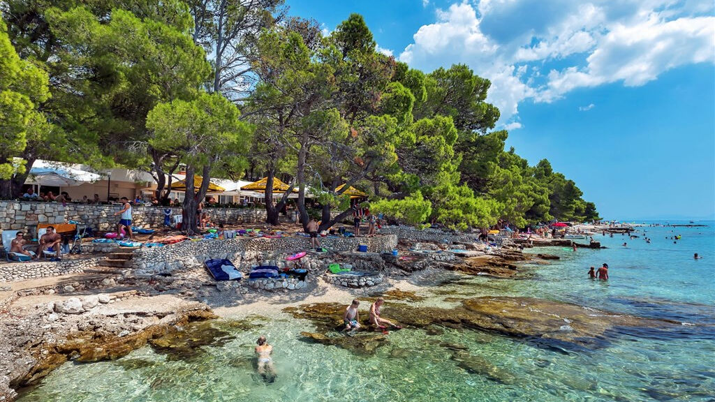 Oblázková pláž proložená betonovými platy je od hotelu vzdálena cca 50 m. Pozvolný vstup do vody, vhodné i pro menší děti.