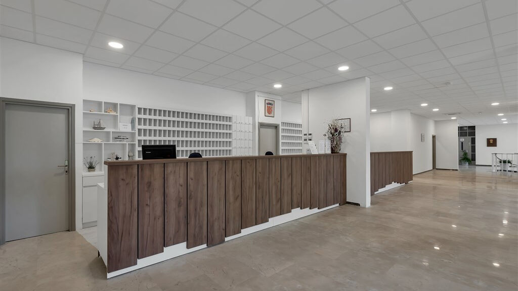 Hotelový komplex je tvořen hlavní třípatrovou budovou bez výtahu a jednopatrovými pavilony depandancí, které leží v hustém lesoparku. Recepce s trezory, směnárna, hotelová restaurace, kavárna.
