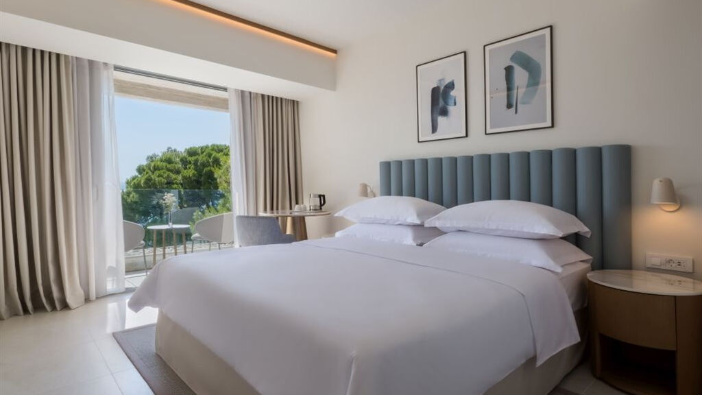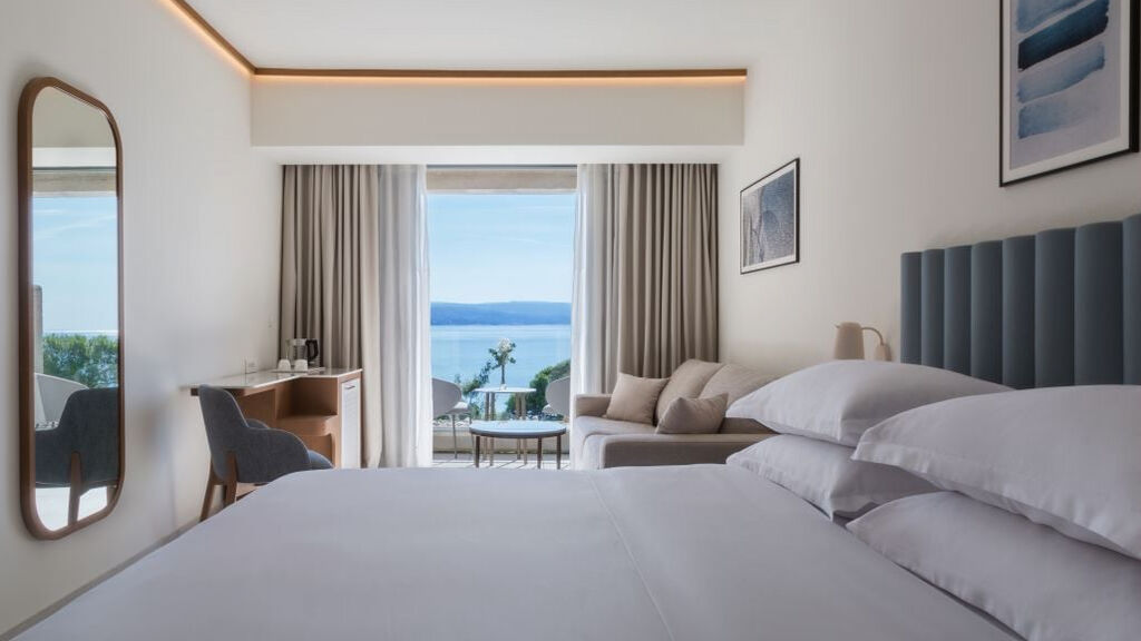 Za příplatek pokoje s výhledem na mořskou stranu a dvoulůžkové pokoje Superior s přistýlkou se stejným vybavením a balkonem s výhledem na mořskou stranu.