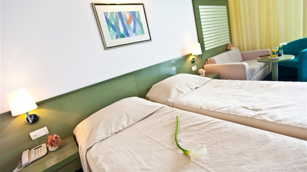 Klimatizované dvoulůžkové pokoje s možností přistýlky jsou vybaveny vlastním příslušenstvím (koupelna, vysoušeč vlasů, WC), klimatizací, SAT/TV, telefonem a balkonem; za poplatek minibar, WiFi.