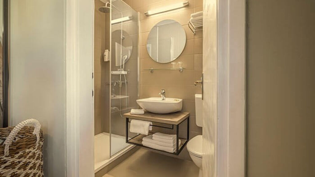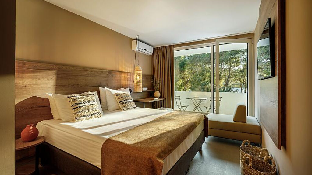 DRD: koupelna/WC (vysoušeč vlasů), klimatizace, TV/sat., telefon, trezor, balkon, v depandanci. DR: viz DRD, v hlavní budově. DRSSS: viz DR, strana k moři, možnost přistýlky. FRSS: viz DRSSS, možnost dvou přistýlek.
