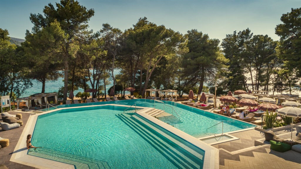 Pláž přímo před hotelem zpevněna betonovými platy, dno moře oblázkové. Lehátka a slunečníky na pláži za poplatek. Oblázková pláž cca 100 m. Ostrov má spoustu divokých pláží, které doporučujeme navštívit.
