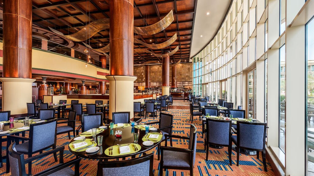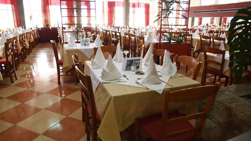 150 pokojů ve dvou budovách, 3 výtahy, klimatizovaná recepce, restaurace, bar, kavárna, směnárna, na sluneční terase venkovní bazén se slunečníky a lehátky za poplatek (v omezeném množství).