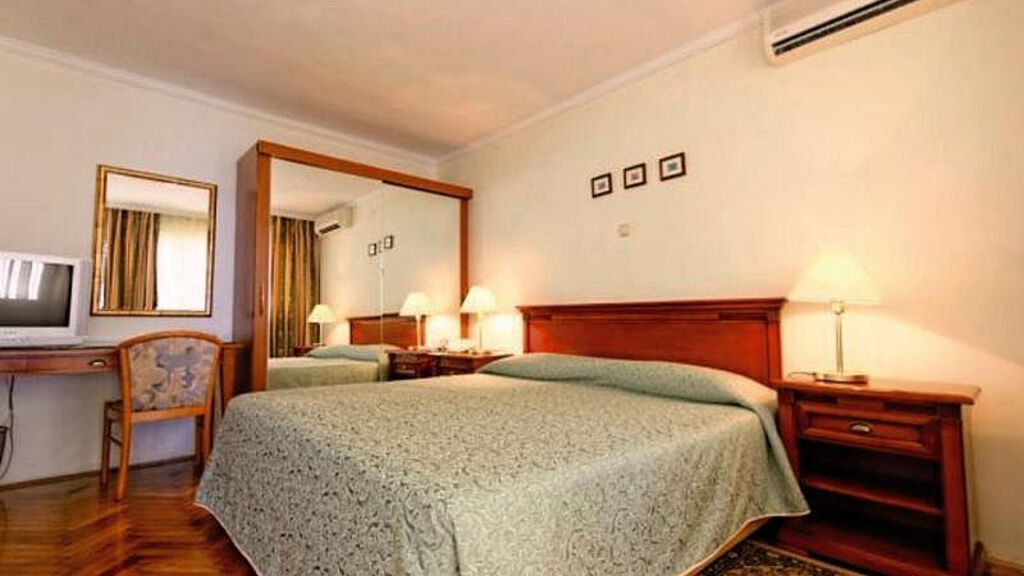 Dvoulůžkový pokoj (DR): koupelna/WC (vysoušeč vlasů), TV/sat., klimatizace, telefon, bez balkonu, v hlavní budově. Dvoulůžkový pokoj (DRSV): viz DR, pohled na moře. Dvoulůžkový pokoj (DRSST): viz DR, balkon, ve vedlejší budově. Dvoulůžkový pokoj (DRP): viz DRSST, přízemí. Jednolůžkový pokoj (SR): viz DRP, pro jednu osobu.