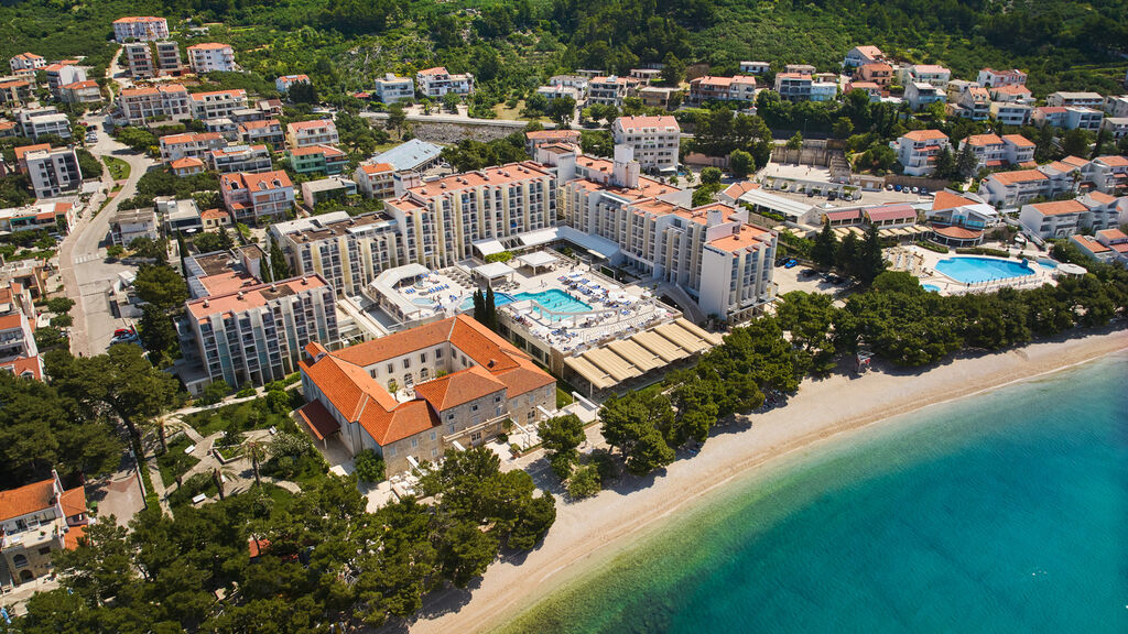 Hotel leží na úpatí pohoří Biokovo, v bezprostřední blízkosti pláže, cca 500 m od centra městečka, před hotelem podél celého pobřeží prochází promenáda, která patří k nejkrásnějším na celém pobřeží.