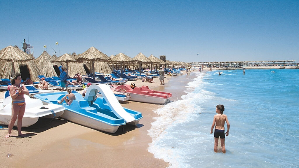 Přímo u moře s písečnou pláží a korálovým útesem cca 13 km jižně od centra Hurghady a cca 11 km od letiště.