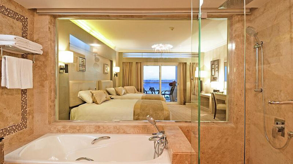 DRS: koupelna/WC (vysoušeč vlasů), klimatizace, telefon, TV/sat., trezor zdarma, minibar za poplatek, set na přípravu kávy a čaje, balkon nebo terasa. DRXPV: viz DRS, prostornější, výhled bazén. DRXSV: viz DRS, prostornější, výhled moře. DRSWD: viz: DRXPRV, přímý vstup do bazénu.
