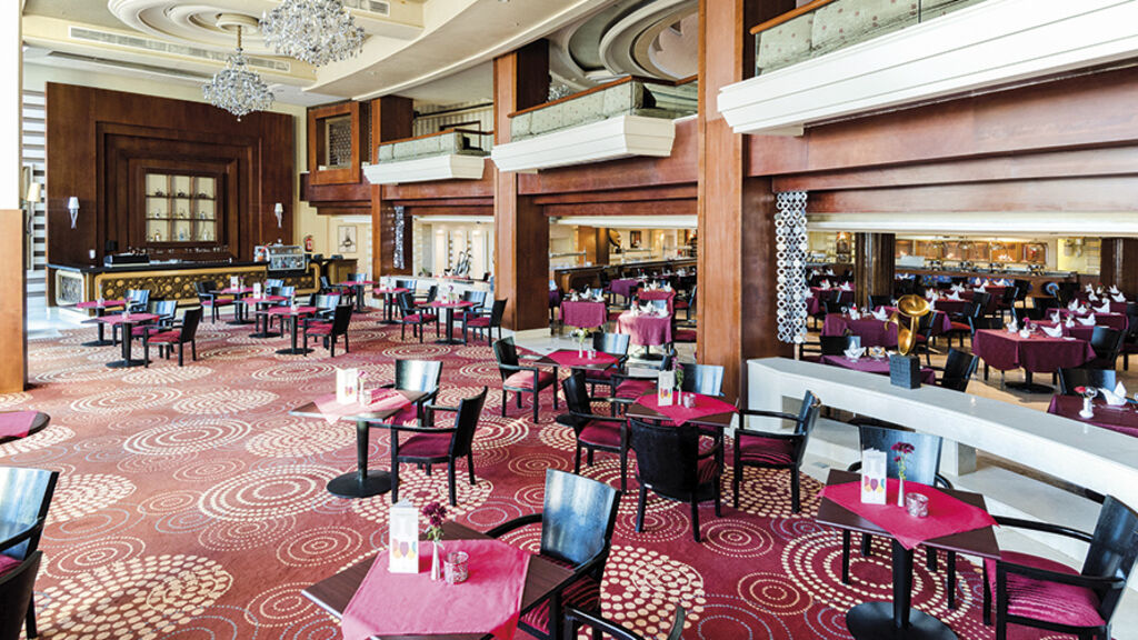 Snídaně, oběd a večeře formou bufetu Místní rozlévané nealkoholické a prémiové alkoholické nápoje (24 hodin denně) Lehké občerstvení během dne Odpolední káva, čaj, zákusky a zmrzlina pro děti Do restaurace je večer vyžadován společenský oděv (páni - dlouhé kalhoty)