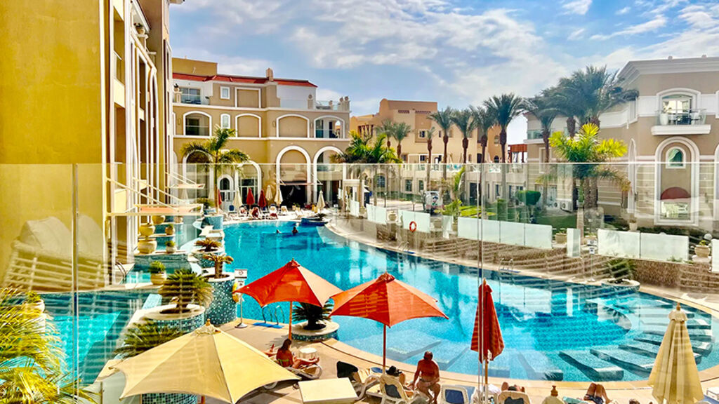 Přímo u pláže cca 21 km jižně od letiště a asi 24 km od centra Hurghady