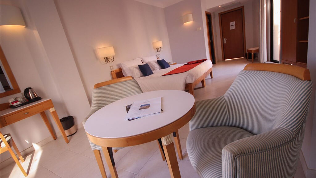 DR: koupelna/WC (vysoušeč vlasů), klimatizace, telefon, TV/sat., trezor, minilednička, set na přípravu kávy a čaje, balkon. DRSV: viz DR, výhled na moře. DRBV: viz DR, prostornější, výhled na záliv.
