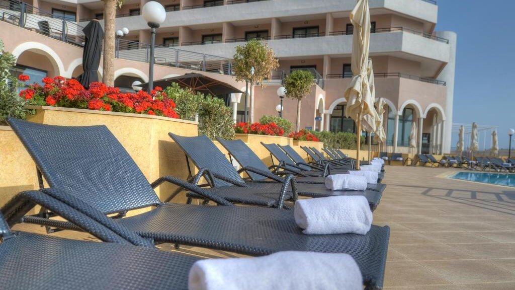 Luxusní komplex na skalnatém výběžku v klidné části St. Julian‘s, centrum s obchody, bary a restauracemi cca 1 km, středisko Sliema cca 4 km, hlavní město Valletta cca 9 km (zastávka autobusu u hotelu).