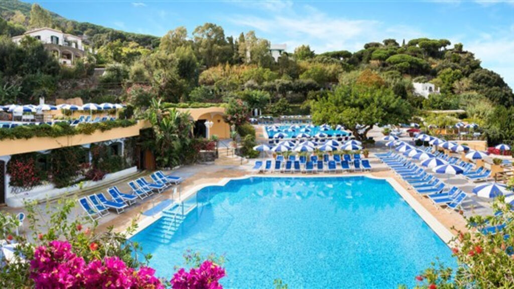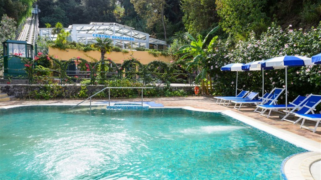 Hotel je součástí termálního parku Castiglione a je umístěný ve svahu nad mořem v zeleném parku s bujnou vegetací, cca 2 km od střediska Casamicciola a 3 km od města Ischia Porto, autobusová zastávka nad hotelem, kam se dostanete lanovkou.