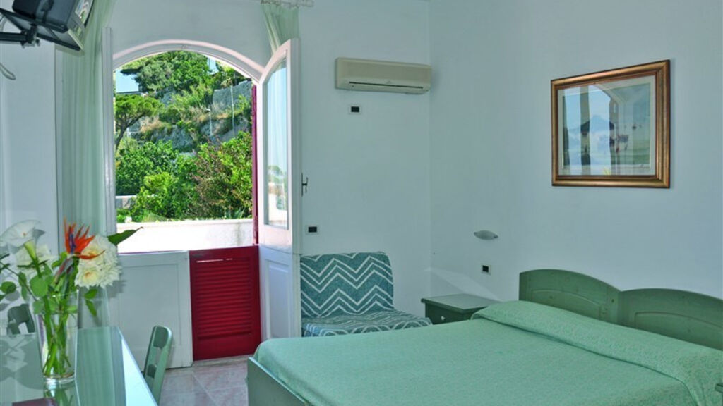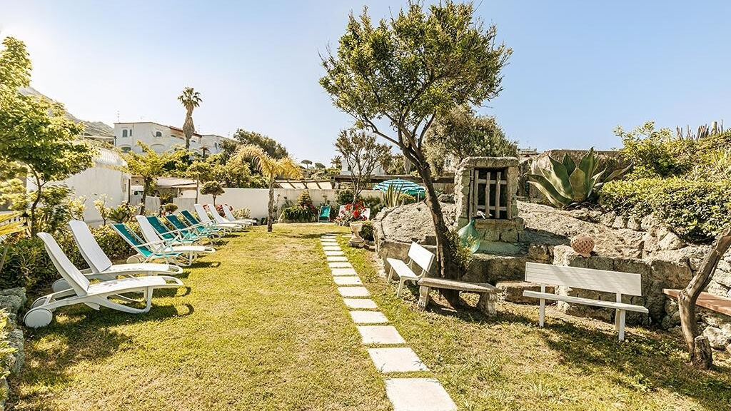 Hlavní budova a několik vedlejších budov v zahradě, nad známou pláží Citara. Nákupní možnosti cca 50 m, centrum Forio 2 km (hotelový miibus zdarma ve stanovených časech), termální park Poseidonovy zahrady cca 700 m.