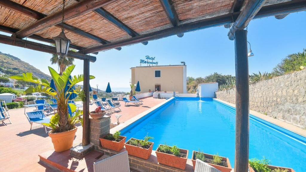 Hotel Maremonti*** v části Forio- Panza na ostrově Ischia má skvělou panoramatickou polohu s výhledem na překrásné Sant Angelo a na ostrov Capri.Leží pouze pár kroků od zastávky místní MHD, blízko centra městečka Panza, kde jsou obchody, taverny, banka i lékárna a především cca 12 minut chůze od velmi známé a jedinečné zátoky Sorgeto, kde vyvěrají horké termální prameny přímo do moře. Je to velmi vyhledávané místo všemi návštěvníky ostrova Ischia, koupat v moři se zde můžete celoročně.Nejbližší pláž – Sant Angelo (odvoz hotelovým busem), Citara – odvoz hot. busem, zátoka Sorgeto – kamenitá s přírodními „vanami“ a horkými prameny vyvěrajícími v moři(přístup po cca 200 schodech)Hotel je od srpna 2013 majoritně vlastněn českými majiteli a tomu odpovídají postupné změny ve vybavení i ve službách – samozřejmě ve směru pozitivním pro klienty a s typickou italskou kuchyní.Služby 1 venkovní termální bazén (32 – 35 st.), TV hala s velkou projekcí, k dispozici české programy (ASTRA), WIFI ZDARMA v prostorách recepce, haly, baru a terasy u baru, bar, trezor k dispozici na recepci, zahrada, privátní parking, terasa s krásným výhledem na moře, solární terasa u bazénu - k dispozici slunečníky a lehátka ZDARMA. Termální procedury v blízkosti, pro hotelové hosty denně po snídani odvoz ZDARMA k parku Tropical a na konečnou zastávku busu do St. Angela a na pláž Citara / k Poseidonovým zahradám. Zpět odvoz – návrat před večeří.V hotelu k dispozici italský i český personál – hovoříme : italsky, anglicky, česky, rusky, německy.