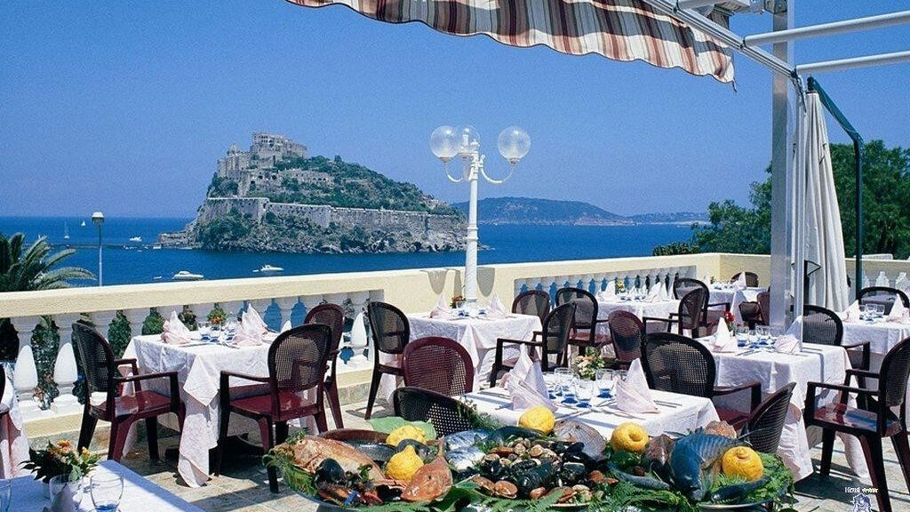 Poloha hotelu:Pěkný rodinný hotel se nachází v hlavním městě ostrova v Ischia Ponte, na malém výběžku nad mořem s výhledem na Aragonský hrad. Má 2 části, hlavní Nymf a La Fenice, která se nachází přímo nad hlavní částí. Hotel disponuje vlastní pláží s molem, lehátky a slunečníky, která je přístupná po cca 75 schodech. V areálu hotelu hosté mohou využít venkovní termální bazénky se silně železitou termální vodou. Pokoje jsou menší, zařízeny v jednoduchém italském stylu. Přímo před hotelem zastavuje autobus, který spojuje hotel s centrem hlavního města, kde se nachází široký výběr obchodů a restaurací. Krátkou, cca 20 min vycházkou je možné dojít až do samotného centra městečka, kterému dominuje majestátní Aragonský hrad.Letiště v Neapoli je vzdálené 45 km.