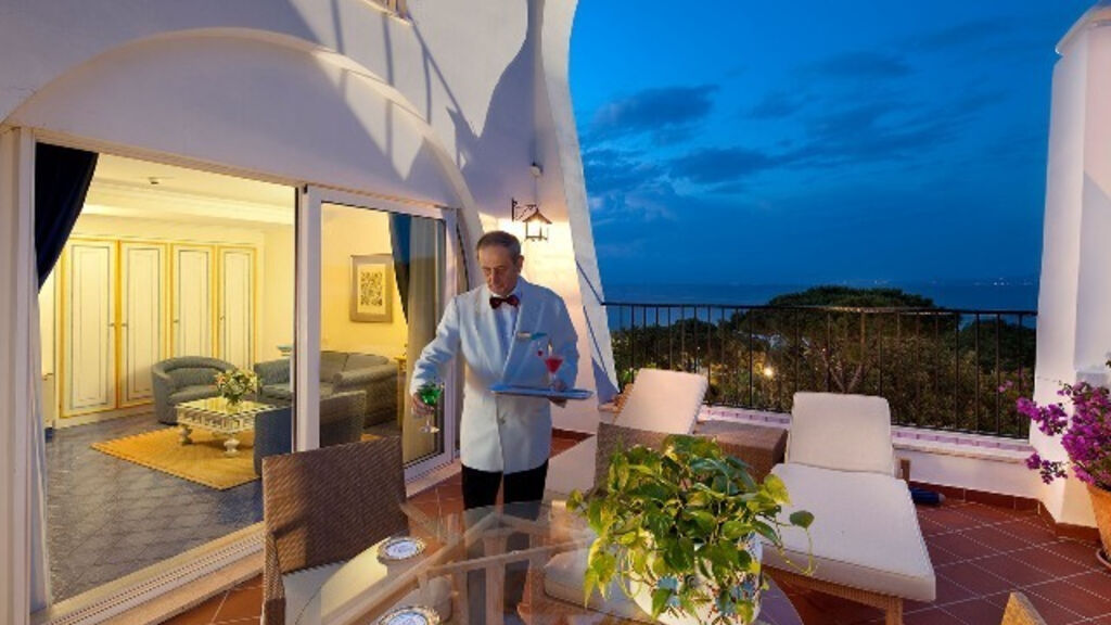 - Dvoulůžkový pokoj Tower Suite: 60 m2, panoramatické terasy, 2 patra, kávovar, výhled na Neapolský záliv