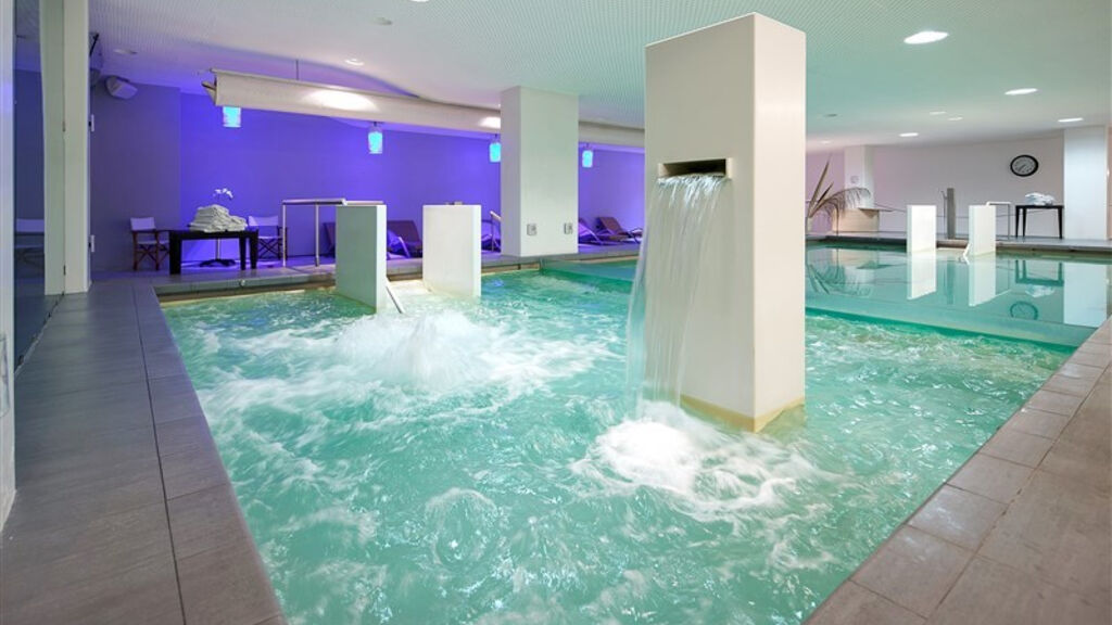 Prostorná vstupní hala, recepce, restaurace, bar, sluneční terasa s bazénem, lehátky a slunečníky, 2 kryté termální bazény.