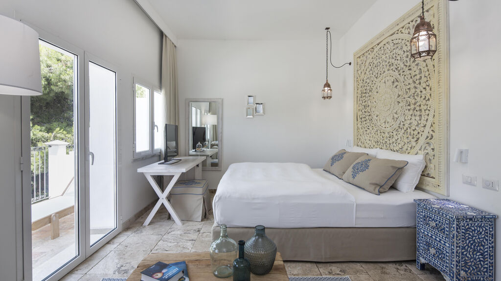 - Villa, 2 ložnice, Boční výhled moře: terasa s vlastní zahradou, 2 oddělené ložnice (každá s vl. koupelnou), boční výhled moře
