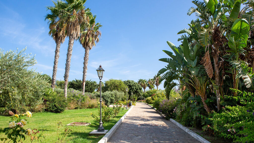 Vybavení hotelu:497 pokojů rozmístěných v hlavní budově (výtah) a několika třípatrových budovách, vstupní hala s recepcí, hlavní restaurace, restaurace s obsluhou (show cooking, nutná rezervace), lobby bar, půjčovna aut. Venku bar u bazénu, bazén, terasa s lehátky a slunečníky zdarma.