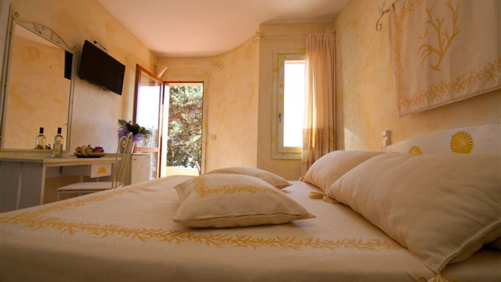 Dvoulůžkové standardní pokoje, zařízené v sardinském stylu, s možností až 2 přistýlek pro děti (palanda) jsou vybaveny vlastním příslušenstvím (koupelna/sprcha, vysoušeč vlasů, WC), klimatizací, stropním ventilátorem, SAT/TV, telefonem, minichladničkou; za poplatek dětská postýlka (cca 7 EUR/den).