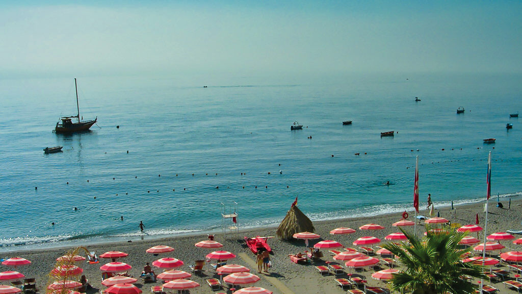 Dlouhá písčitooblázková pláž je u hotelu, slunečníky a lehátka za poplatek. Na pláži vodní sporty za poplatek.