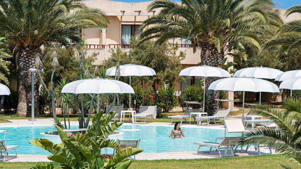 hotel se skládá z hlavní budovy a několika vedlejších dvoupodlažních budov (cca 430 pokojů). Restaurace, 2 bary, novinový stánek, malý obchůdek, přijímací hala s recepcí. V zahradě 2 sladkovodní bazény, terasa na opalování a bar u bazénu. Lehátka a slunečníky u bazénu zdarma, osušky (na kauci cca 20 €, výměna cca 2 €).