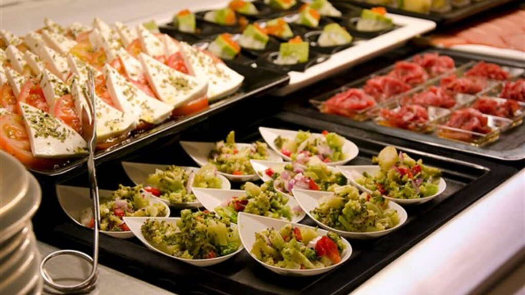 Snídaně, oběd a večeře formou bufetu Lehký snack během dne (11.00-18.00 hod. v baru u bazénu, 18.00-23.00 hod. v baru) Vybrané alkoholické a nealkoholické nápoje místní výroby (11.00-23.00 hod.)