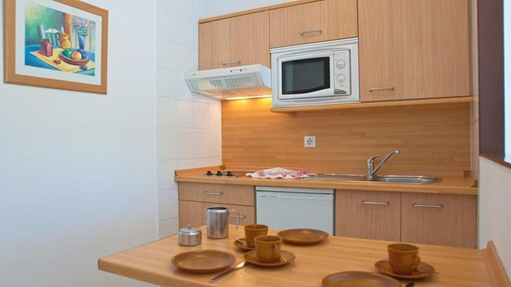 AP1: koupelna/WC (vysoušeč vlasů za poplatek), obývací pokoj kombinovaný s kuchyňským koutem (minilednička, mikrovlnná trouba), oddělená ložnice, telefon, TV/sat., balkon nebo terasa.