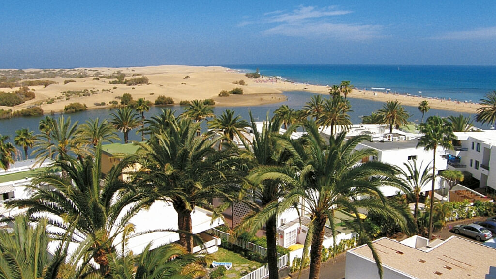 Na okraji palmové oázy ve středisku Maspalomas. Maják El Faro a nákupní promenáda s kavárnami, restauracemi, bary a obchody pouze několik minut chůze. Nákupní centrum Varadero cca 15 minut chůze. Letovisko Playa del Inglés cca 4 km (spojení linkovým autobusem, zastávka cca 500 m).