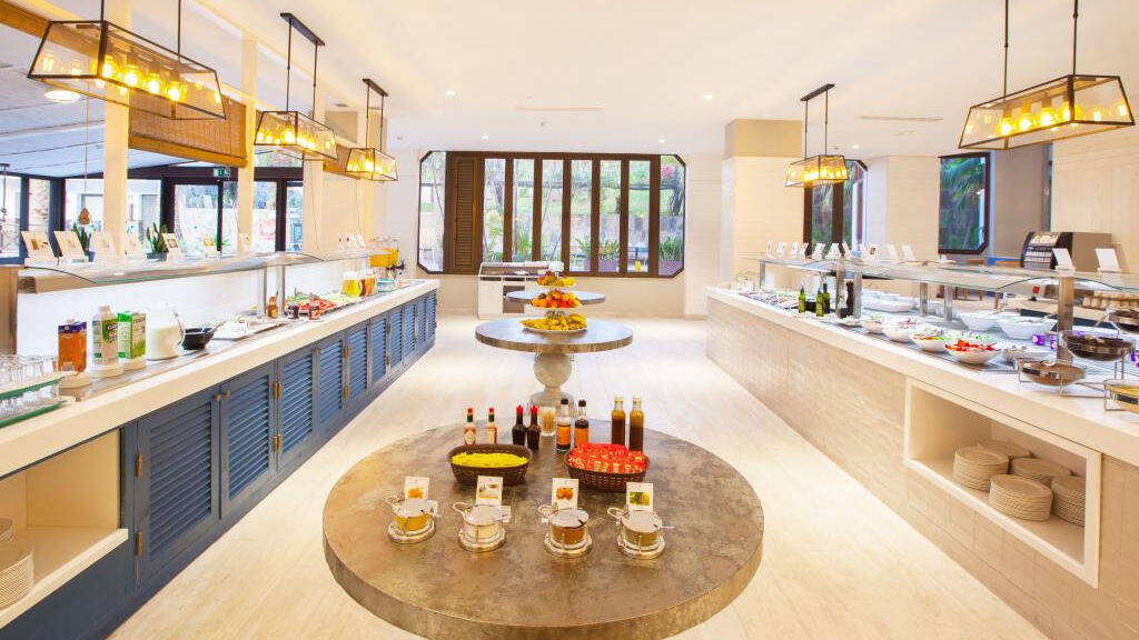 snídaně, polopenze nebo all inclusive. Snídaně formou bufetových stolů. Při rezervaci polopenze navíc večeře formou bufetových stolů. Při rezervaci all inclusive navíc obědy formou bufetových stolů. Vybrané místní alkoholické a nealkoholické nápoje během dne a k havnímí jídlům. Snacky, káva a koláče. Každé 3 dny možná večeře v a-la-carte restauraci (nápoje za poplatek).