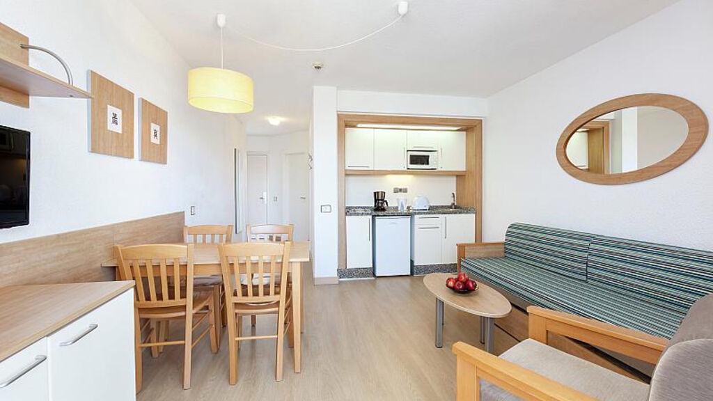 V jedné šestipatrové patrové budově je celkem 140 apartmánů. Hostům je k dispozici vstupní hala s recepcí, výtahy, internetový terminál a možnost Wi-Fi připojení k internetu ve společných prostorech (oboje za poplatek), restaurace, bar, samoobslužná prádelna, masáže, půjčovna aut a kol. V zahradě se nachází bazén pro dospělé (v zimních měsících vyhřívaný) s oddělenou částí pro děti, sluneční terasa, lehátka, slunečníky a dětské hřiště.