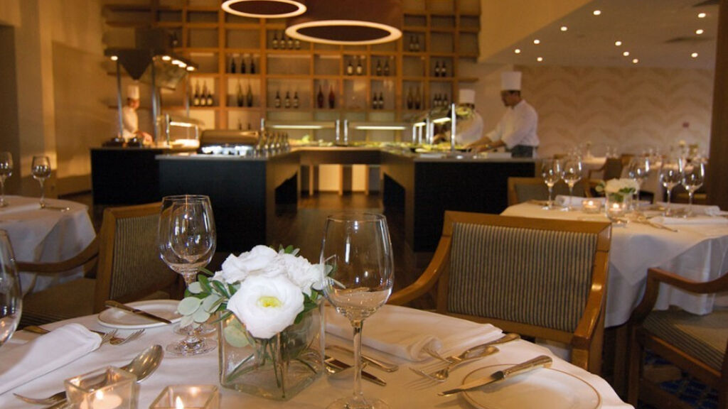 Vstupní hala s recepcí, restaurace s terasou, kavárna, hlavní restaurace, ve které se pořádají tematické večery, lounge s knihovnou, koktejlový bar s terasou, restaurace u bazénu, bar, venkovní bazén, dětský bazén, vnitřní bazén vyhřívaný v zimě, sauna, pára, jacuzzi, masáže, fitness, konferenční prostory, obchůdky, kadeřník, Wi-Fi připojení k internetu, směnárna, možnost půjčení auta nebo kola. Ubytování, V hotelu je celkem 100 pokojů v několika kategoriích. Každý pokoj má balkon nebo terasu, klimatizaci, telefon v koupelně, minibar, zařízení pro přípravu kávy a čaje, rádio, SAT TV, fén, elektronický trezor, Wi-Fi připojení k internetu, župan a pantofle.