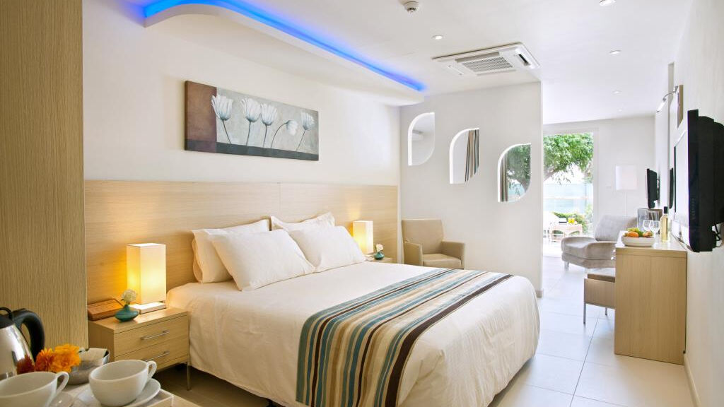 Dvoulůžkové pokoje (A2C/A3C): cca 26 m2, set pro přípravu kávy a čaje, malá chladnička, klimatizace, trezor, sat. TV, telefon, vana, WC, fén a balkon.Dvoulůžkové pokoje (A1A/A2A): cca 22 m2, sprcha, balkon s bočním výhledem na moře, jinak jako A2C.Dvoulůžkové pokoje (A2B/A3B): cca 26 m2, balkon s výhledem na moře, jinak jako A2C.Superior pokoje (A2E/A3E): cca 28 m2, župan, pantofle a výhled na moře. Vybavení jako A2C.Junior suite (A2G/A3G): cca 33 m2, navíc pohovka na spaní, župan, pantofle, terasa a výhled do krajiny, jinak jako A2C.Junior suite (A2F/A3F): cca 33 m2, navíc pohovka na spaní, župan, pantofle, terasa a výhled na moře, jinak jako A2C.