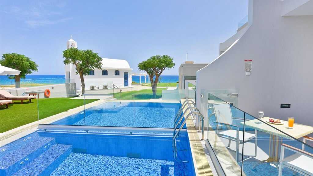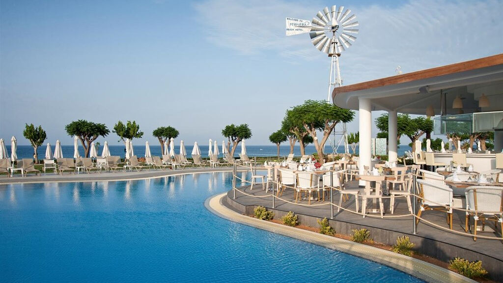 235 pokojů, lobby s recepcí, výtahy, 4 restaurace (restaurace Priamos na snídaně, restaurace Kamares s terasou na obědy a večeře, a-la-carte restaurace Thalassa a Marante Asian - obě za poplatek), bar a minimarket. Ve venkovním areálu 2 bazény (jeden z toho pouze pro dospělé) s bary u bazénu. Lehátka a slunečníky u bazénu zdarma.