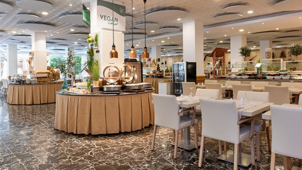vstupní hala s recepcí, výtah, Wi-Fi, restaurace, lounge bar, snack bar u bazénu, vnitřní bazén, venkovní bazén, sluneční terasa (slunečníky a lehátka u bazénu zdarma; na pláži za poplatek), pilates, jóga, volejbal, stolní tenis, šipky, živá hudba, fitness, za poplatek: vodní sporty na pláži, Spa, sauna, masáže,
